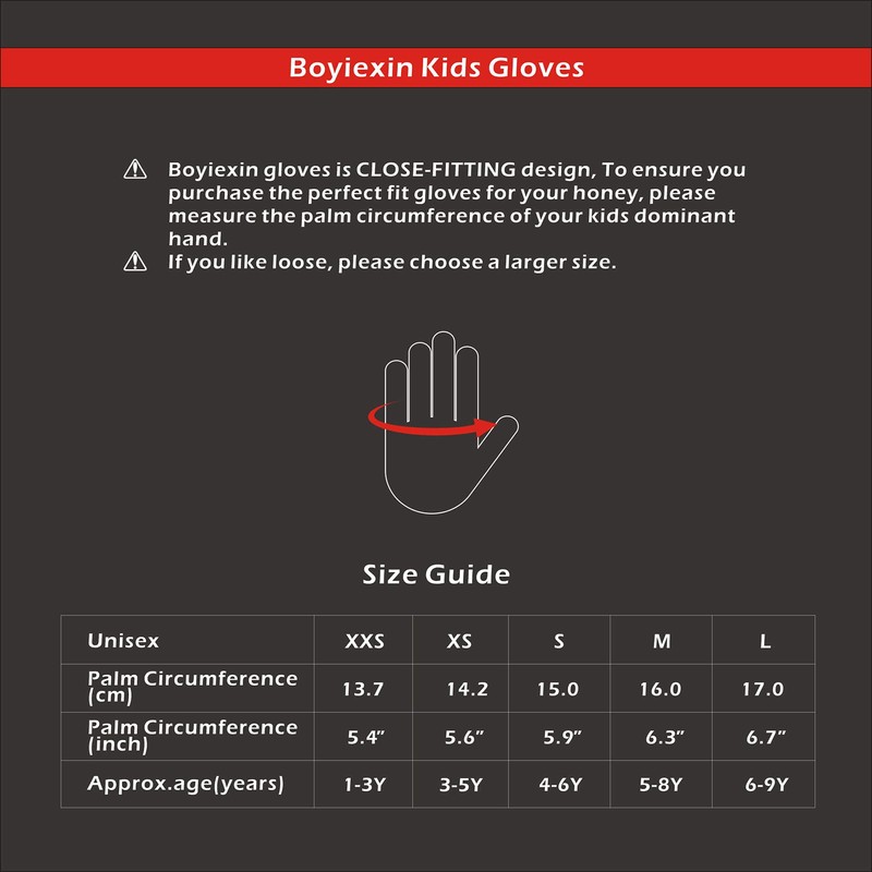 3.Boyiexin kids monkey bar gloves let your 3-10 years old children feel cool and it also protect their hands from getting terrible blisters and callous while they enjoy the sport such as Monkey bar, Climbing, Riding Bicycles - Pedal & Balance Biking, Fishing, Skateboards, Scooters, Roller Skates, Roller Blades, Balance Boards, Gymnastics or anything else that might hurt their hands.
