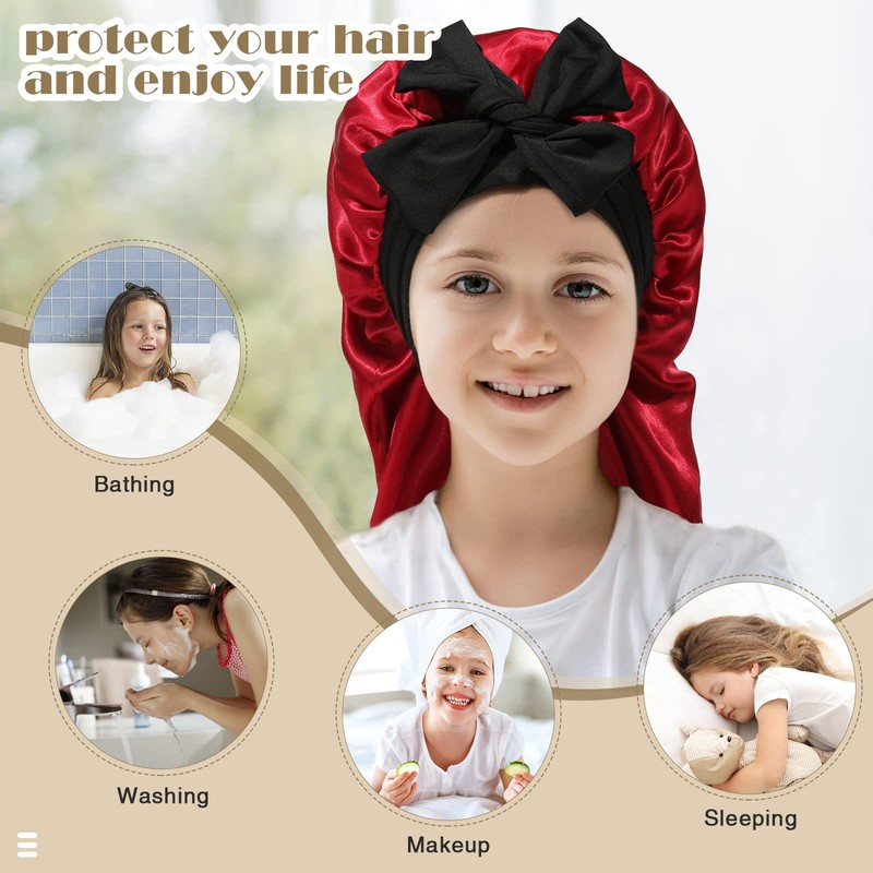 - NOT EASY FALL OFF & NO MARKS - Hate to leave marks on your child's head? Our kids satin bonnet is designed with a tie band to adjust the size freely, with a soft elastic band that can comfortably hold the hair all night, and protects the head without leaving marks