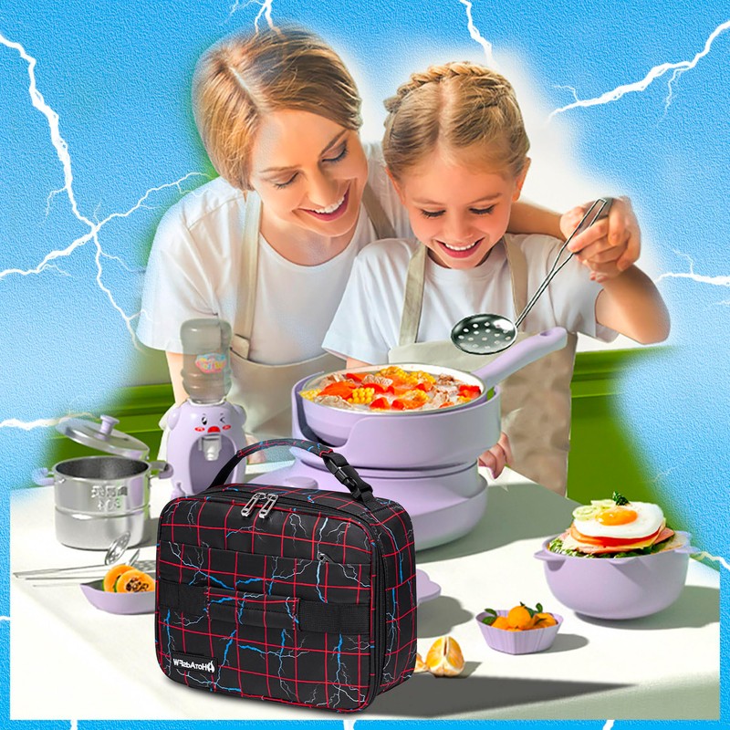 • EASY TO CARRY: The buckle handle with hook facilitate you attach the lunch cooler bag to other backpack for hands-free especially when your kids go to school, the front handle could be carry on the luggage for your airport trip