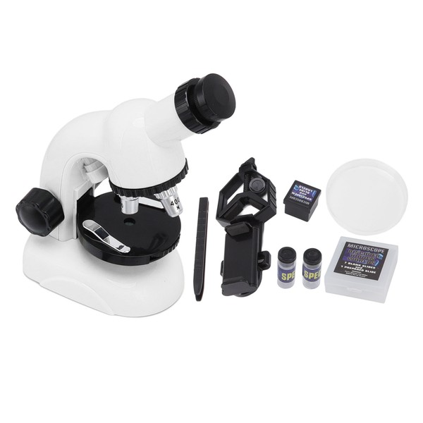 Kids Microscope Science Kit HD Magnifying Glass Student Biological Microscope for Biological Science Experiment White