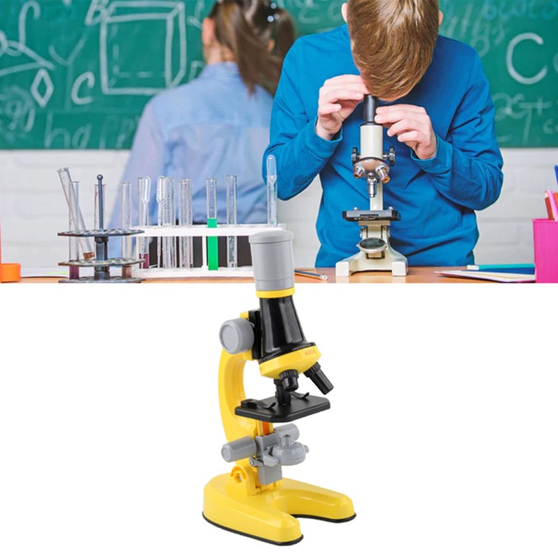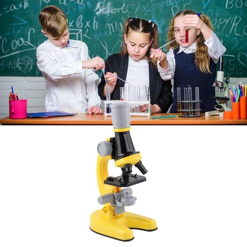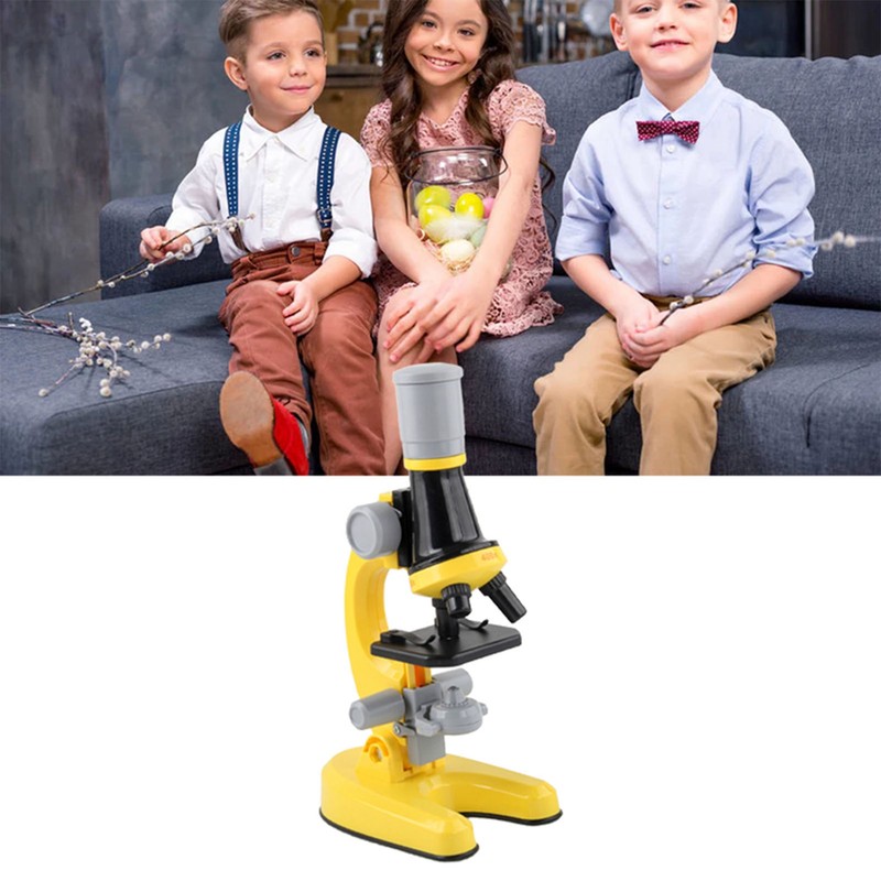 Kids Microscope Set 100x 400x 1200x Magnifications Angle Adjust LED Light Source Science Magnifier Toy Yellow