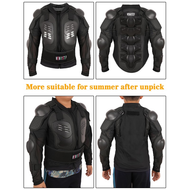 - 3D Full Protection Design: This kids motorcycle jakcet provides full body armor spine, chest, shoulders, elbows, knees key parts cover the largest area of PP protective shell to prevent various injuries caused by accidental falls, providing comprehensive protection
