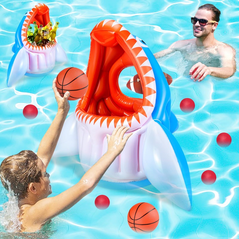 - Designed for Basketball Enthusiasts: Kids can develop their sports skills while splashing water around; It's the pool inflatable shark toy to cool off on a hot summer's day! Just inflate it! Easy to fold and store, it's highly portable for pool, beach, or backyard fun a great choice for keeping everyone entertained and active during memorable summer days.Summer swimming pool party toys for children and adults.Perfect swimming game pool toys for summer parties, family activity, school and more!
