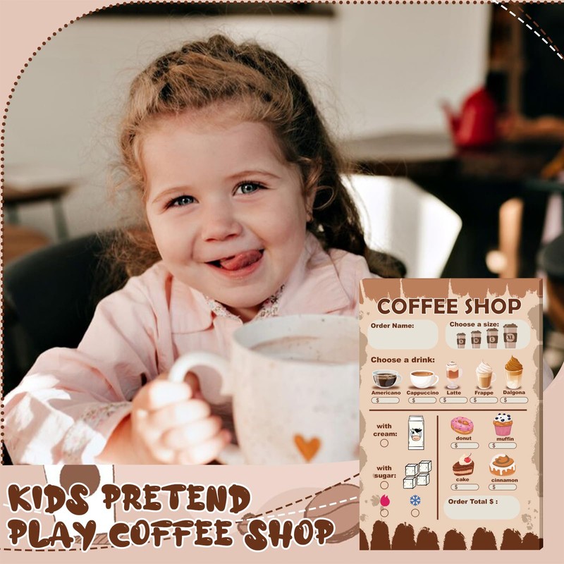 Kids Pretend Play Notepads 4X6 Inch Pretend Play Notebooks 30 Pages per Theme Kids Playtime Notepads Include Imaginative for Toddlers (Coffee Shop)