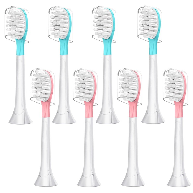 Kids Replacement Toothbrush Head for 7+ Child Soft Brush 4 Blue & 4 Pink & 8 Hygienic Cover Compatible with Phillps Kids Electric Toothbrush HX6321, HX6340, HX6032/94, HX6320, HX6042 (Total 8 Pack)