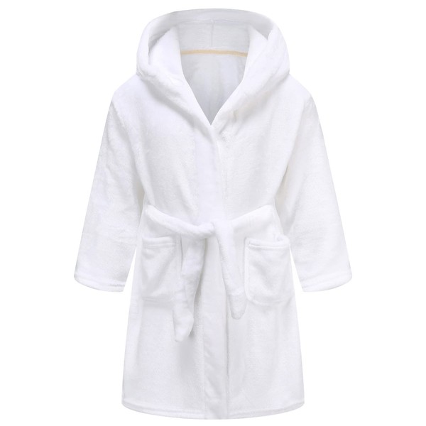 Kids Robe Boys Girls Hooded Fleece Sleep Robe Animal Soft Bathrobe White 13-14 Years