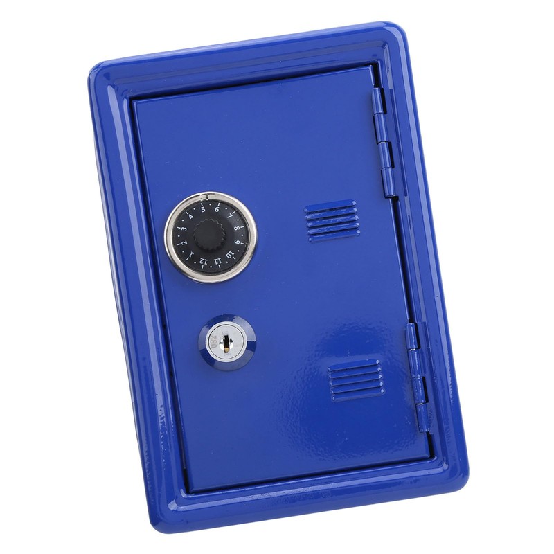 Kids Safe Box, Children Mini Key Money Storage Case with Metal Mini Bank for Kids Boys Girls, Simulation Safe Box Innovation Presents Supplies for Kids (Blue)
