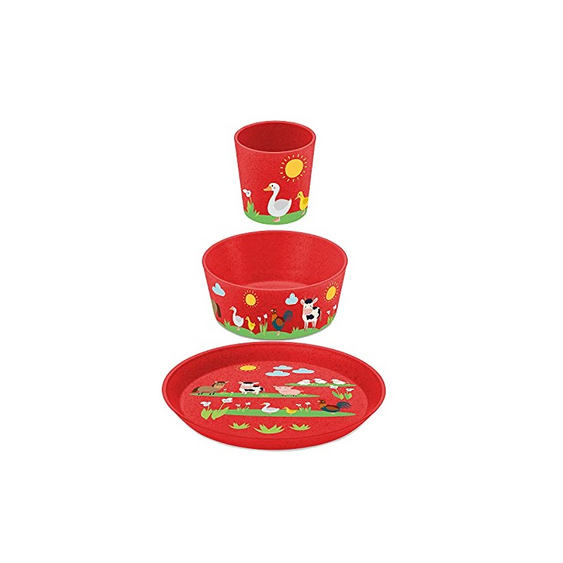 Kids Set Farm Small Plate + Bowl + Cup Organic Red