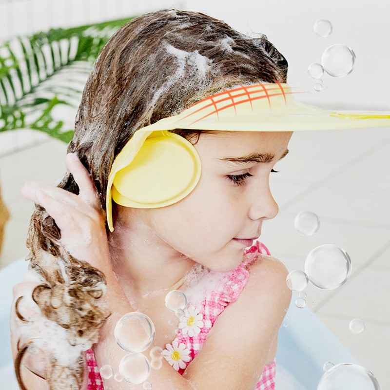 - â€ïžăEasy bath timeăThe baby shampoo shield can prevent water/foam from seeping into the baby's eyes and ears. Babies can play with toys while bathing, making it easier for your child to bathe and have fun!