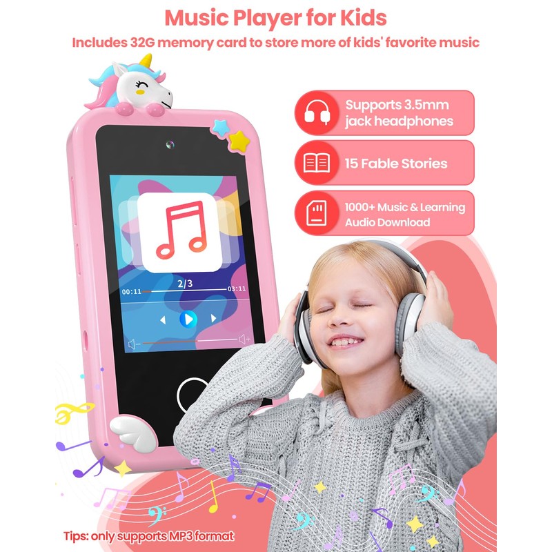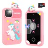 - 📸Dual Cameras - Kids smartphone captures special moments with the front and rear cameras. Kids can Kids choose their favorite frames and mirror effects to take photos and record videos with family or friends. To prevent the loss, kids phone for girls boys comes with a durable lanyard for easy carrying.