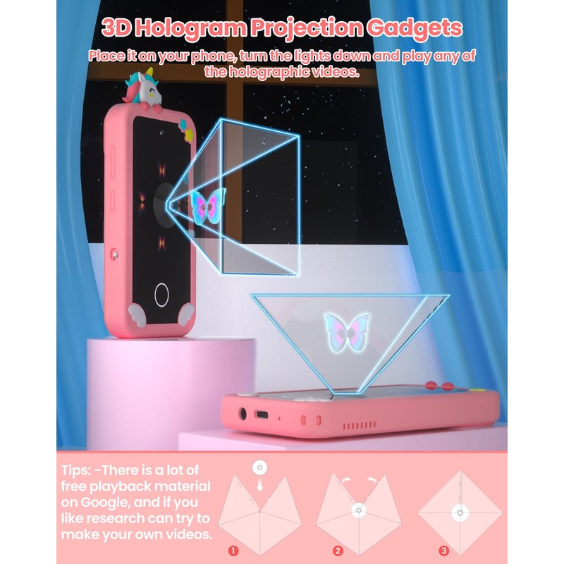 Kids Smart Phone for Girls with Holographic Pyramid, 32G Card Christmas Birthday Gifts for Age 3-10 Kids Toys Cell Phone, 2.8" Touchscreen Toddler Learning Play Toy, Dual Camera, Music Player (Pink)