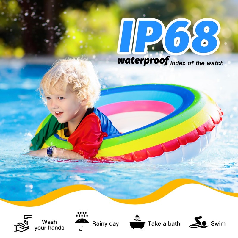 - Make Kids Fitness Fun and Build Healthy Habits : All-Day Activity Tracking: Automatically tracks your kids steps,distance and calories burned.Supports 19 activity modes:swimming,running,walking,cycling,yoga,football,basketball,etc. Sedentary reminder,Drink water reminder,Call/SMS/Message reminder,etc., IP68 waterproof, ready play in water