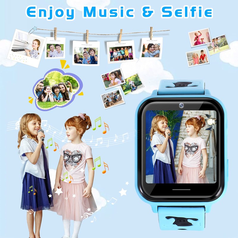• 【Video Camera and MP3 Music Player】Our kids smart watch is equipped with a camera and video camera. Children can take selfies at any time, capture photos and videos and record the exciting moments of their everyday life. You can also enjoy relaxing music and download more songs to their smart watch using the included USB cable.