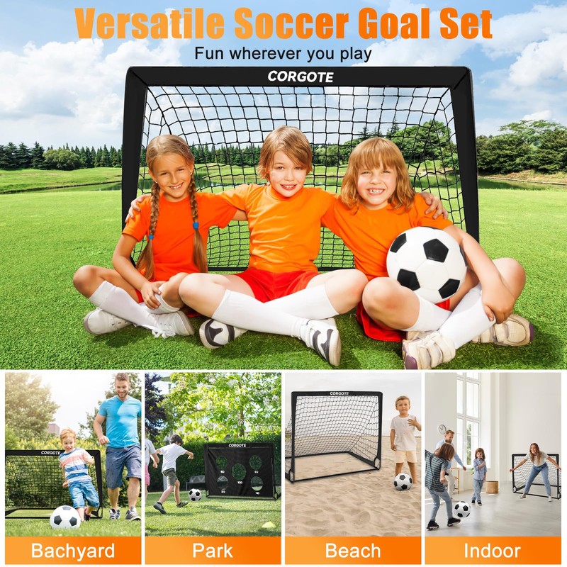 - Portable and Foldable Soccer Goals: The collapsible construction and carrying bag allow your kids to easily transport mini soccer goals for backyard, park, beach, garden, grass, football field, community playground, school playground, and other indoor and outdoor locations. The youth soccer goals are great birthday, Thanksgiving, and Christmas gifts for kids