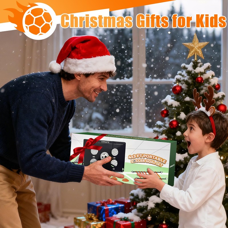 - Soccer Gifts for Kids: Kids will go crazy for this soccer goal set! Complete with all soccer accessories, this soccer goal set transforms any backyard into a personal soccer field. It includes 2 easy-fold kids' 6x4 ft soccer nets, a std size 3 soccer ball, an inflation pump, 6 cones, 8 U-shaped heavy-duty ground nails, and 1 carrying bag. It's a wonderful gift for youth who want to train and improve their soccer skills while building agility and coordination
