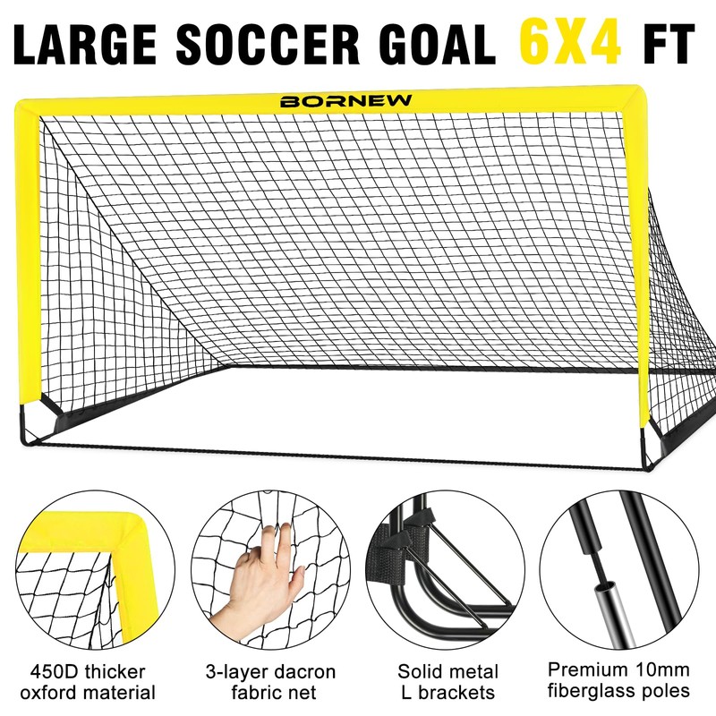- "Entertainment and Practice for All Ages" - Tailored portable equipment for ages 1-18 - toddlers, kids, youth, teenagers, boys, and girls. Ideal 4x3ft soccer net for backyard games and training sessions. Enjoy exciting gameplay with friends and family in various outdoor spaces. Enhance teamwork, motor skills, and coordination with endless hours of fun with our soccer goal.
