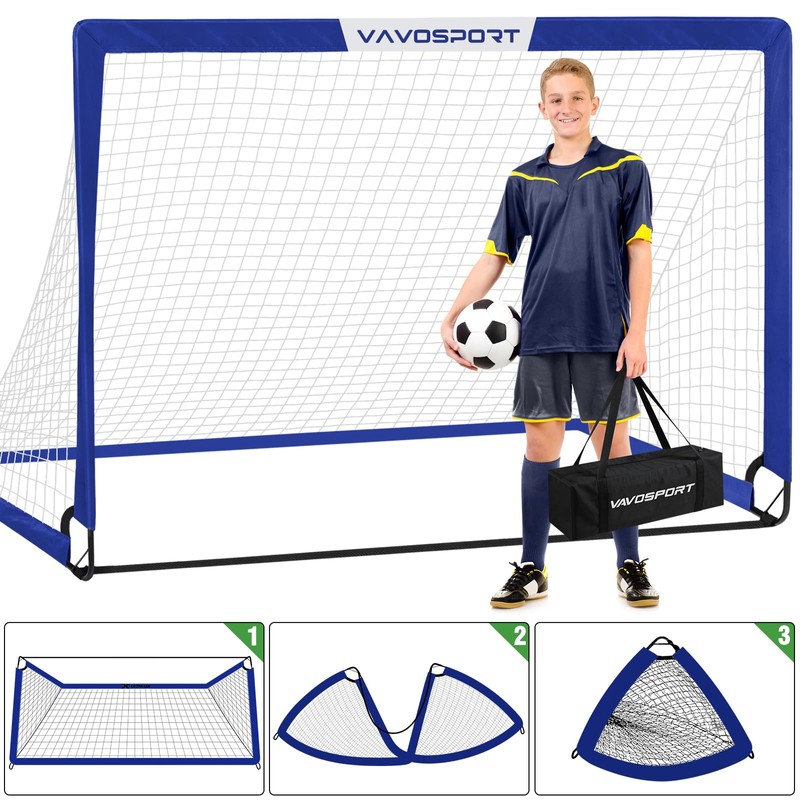 - Complete and Valuable Soccer Goals Set - The VAVOSPORT Soccer Net Set is the most complete soccer set on the market. It has 2 6x4 ft kids soccer goals, 1 std size 3 soccer ball, 1 inflation pump, 10 soccer cones, 8 U-shaped heavy-duty ground nails, and 1 carrying bag. One soccer set for everything you need to develop your child into a little athlete, allowing your kids to have their "own" net to score a goal on!