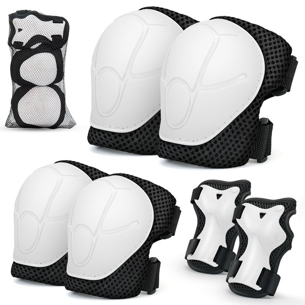 Kids Sports Protective Gear Set,6 PCS Knee Pads Elbow Pads Wrist Guard for 3-8 Yeasr Old Kids Skateboard Inline Roller Skating Biking Riding Scooter (White)
