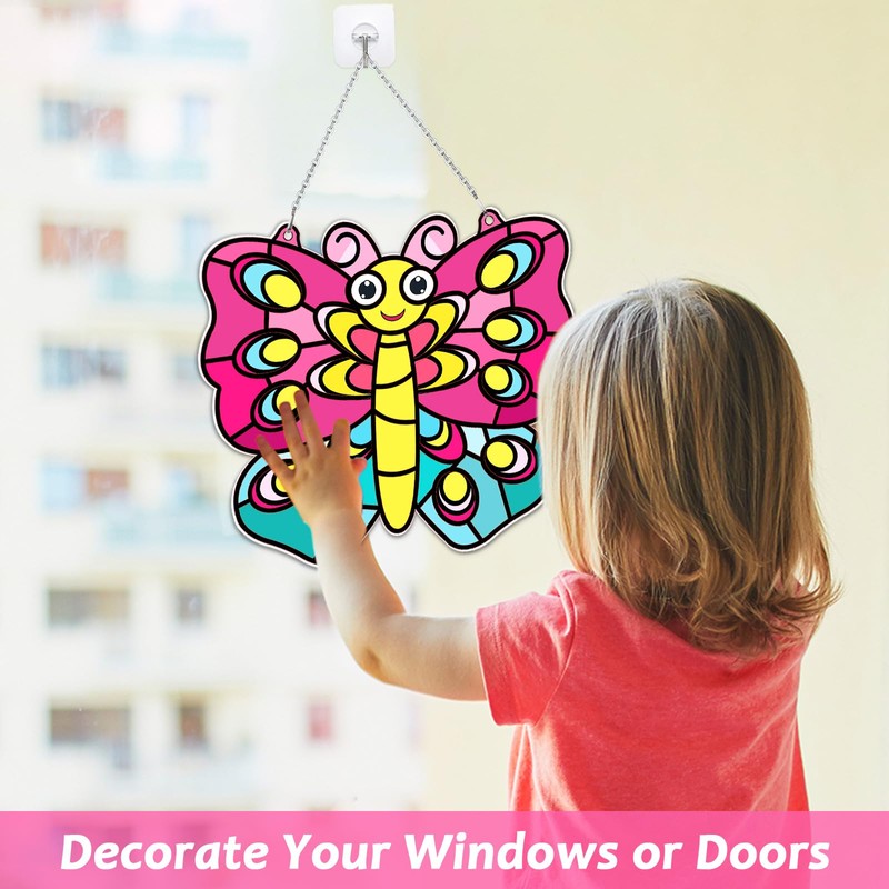 - 【Great Gift for Kids】This kids sticker stained glass craft kit is ideal for children aged 5 and above. Its unique design can capture children's attention, providing a screen-free activity with hands-on fun. butterfly sun catcher kit is the perfect gift for children on their birthdays, parties, children's festivals, New Year's Day, and other holidays.
