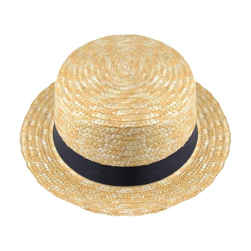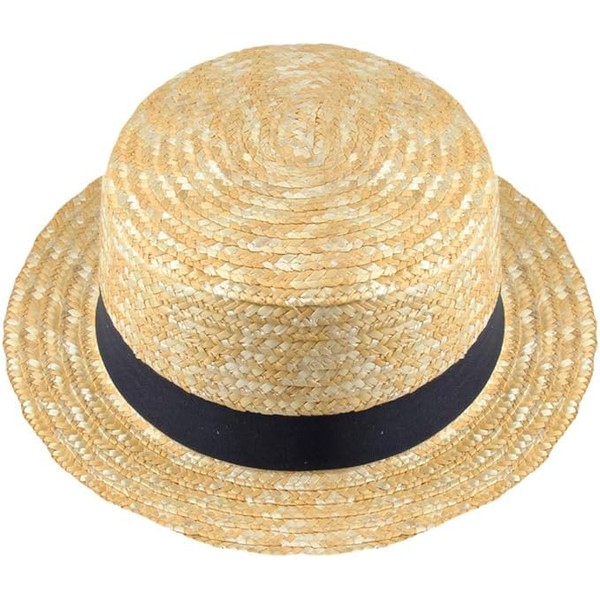 Kids Straw Boater Hat with Black Grosgrain Band Easter Bonnet