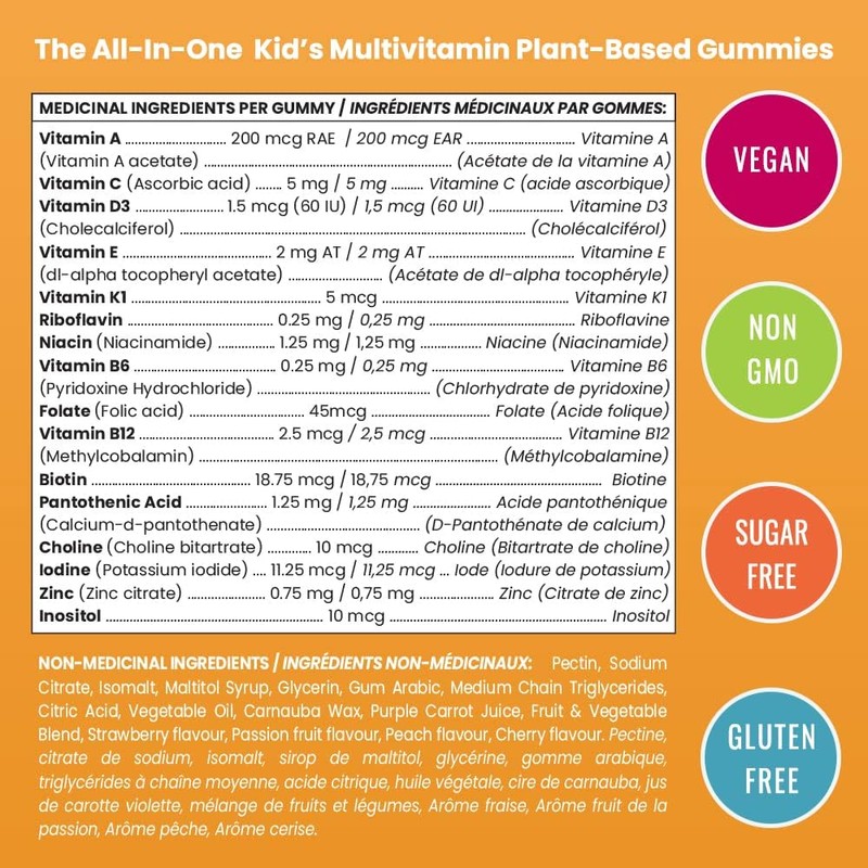 Kids Sugar-Free Multivitamin Gummies – 120 Count. Strawberry, Passionfruit, Peach & Cherry Flavors. Vegan, Non-GMO, Gluten-Free