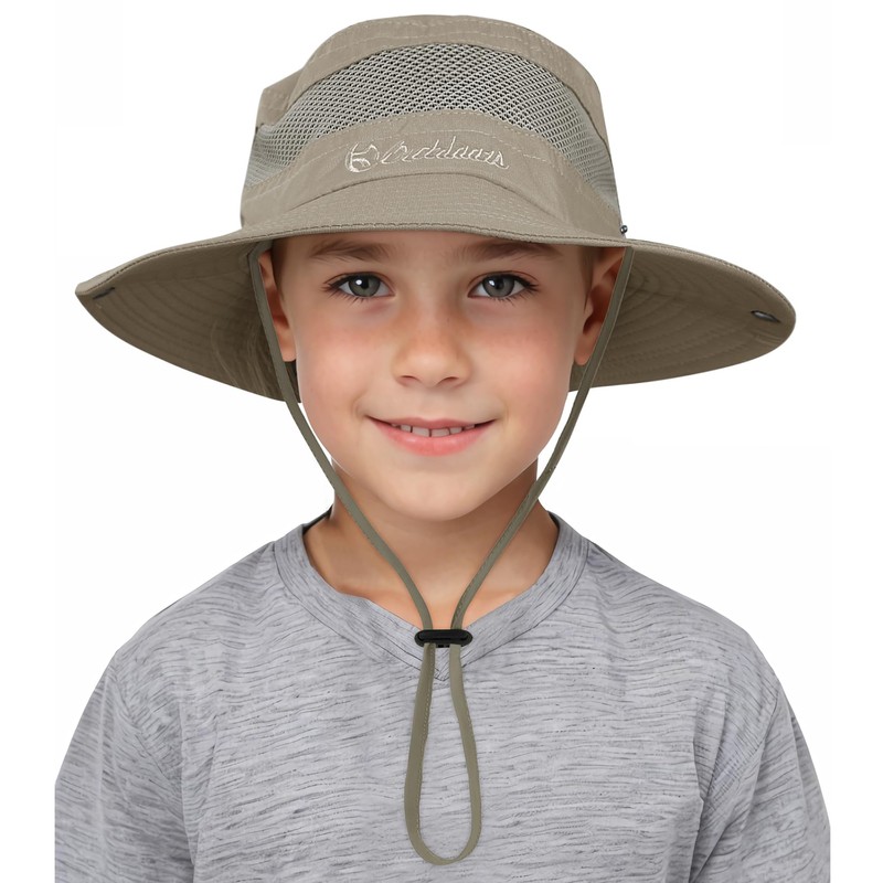 Kids Sun Hat for Boys Girls Wide Brim Bucket Hat for Hiking Camp Fishing Outdoor UPF 50+ Toddler Safari Hat Deep Khaki 5-12 Years