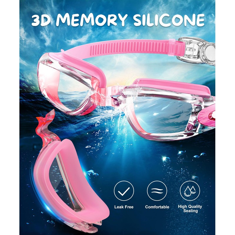 - Anti-Fog and Crystal Clear view: With an upgraded anti-fog coating on the inner surfaces of the lenses that goggles kids prevent fogging up while underwater. Swimming goggles provides 180-degree peripheral view to ensures a crystal clear view without any blurring, allowing your child to see clearly underwater and enhance their swimming experience. Perfect swim goggles for boys, girls and kids swimming lessons