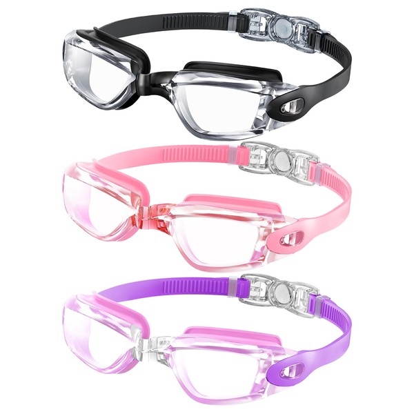 Kids Swim Goggles, Pack of 3 Swimming Goggles for Children Teens, Anti-Fog Anti-UV Youth Swim Glasses for Age 4-16