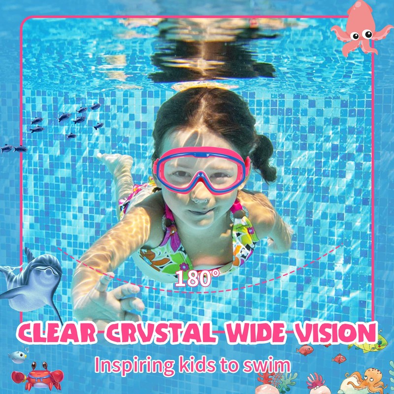 4.180° Panoramic View: Our children's swimming goggles feature an ultra-wide angle lens that allows children to enjoy a clearer and wider view underwater than with smaller frames.