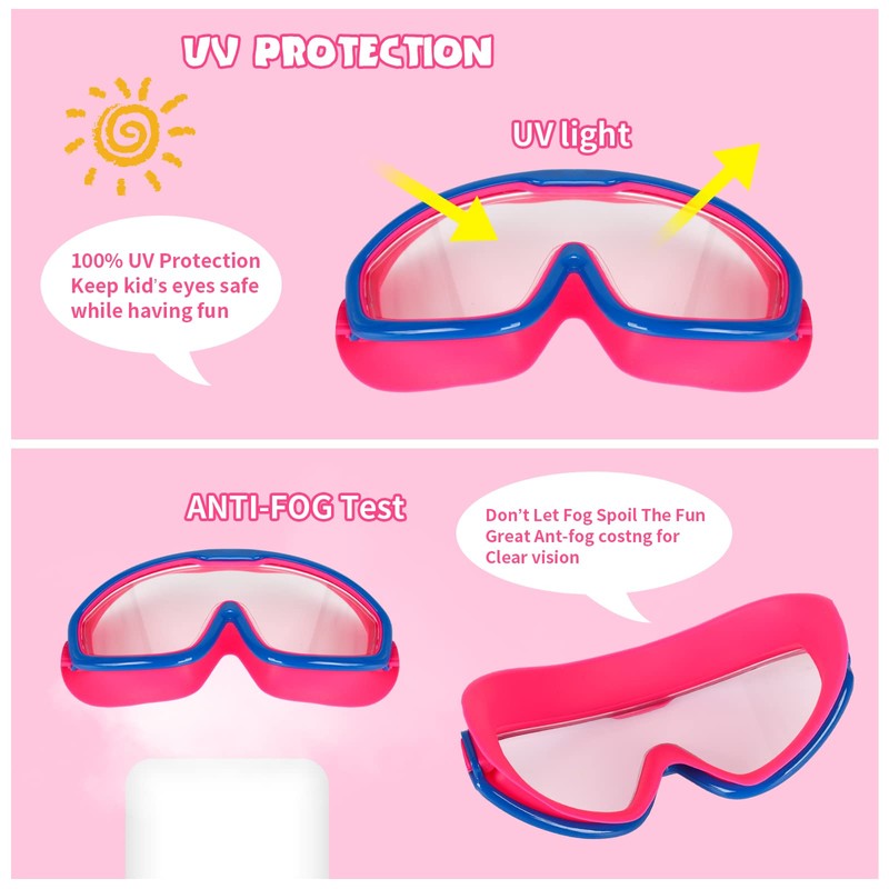 - 【UV Protection】The lenses of our swimming goggles are made with special 100% UV polarised lenses that reduce glare, sun reflection and prevent ultraviolet rays, filter out as much harmful light as possible, protect your kids’ eyes from the heat and damage of the sun's rays and provide a comfortable and safe swimming experience for your boys and girls.
