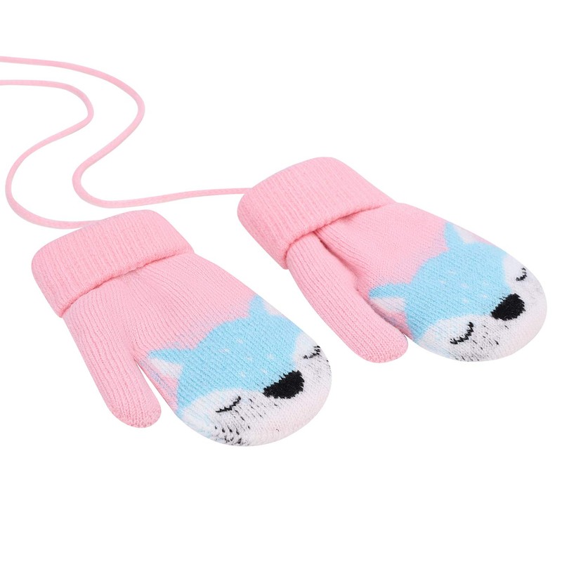 Kids Toddlers Thermal Gloves Mittens Winter Warm Thick Knitted Gloves with String Baby Fleece Lined Gloves Hanging Neck Mittens Cute Full Finger Mittens with Anti-Lost String for Boys Girls Age 0-4