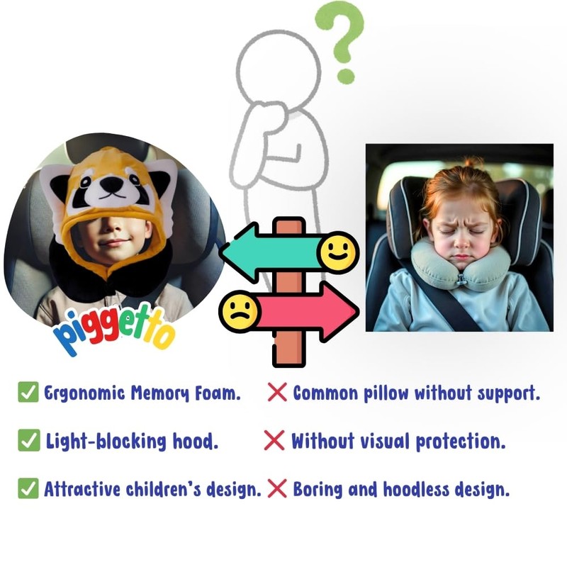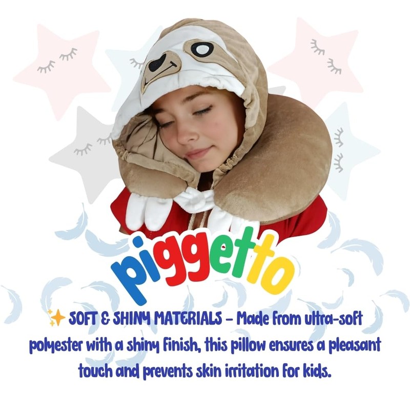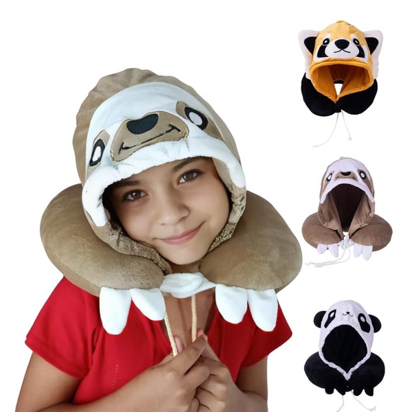 Kids Travel Pillows with Hood, Headrest for Airplane Car Train & Bus, Long trip essentials, Ergonomic cervical support, light-blocking, Hooded animal cartoon designs, Skin-Friendly Soft & Comfortable