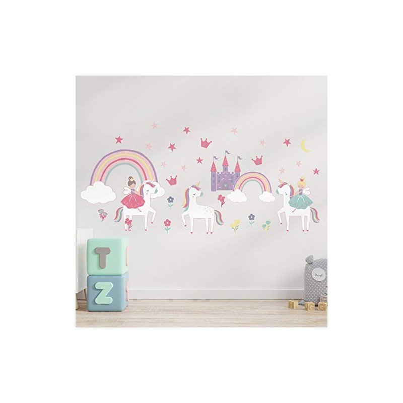 Kids Unicorns Princess Rainbows 38 Peel and Stick Wall Stickers Bedroom Décor Decal