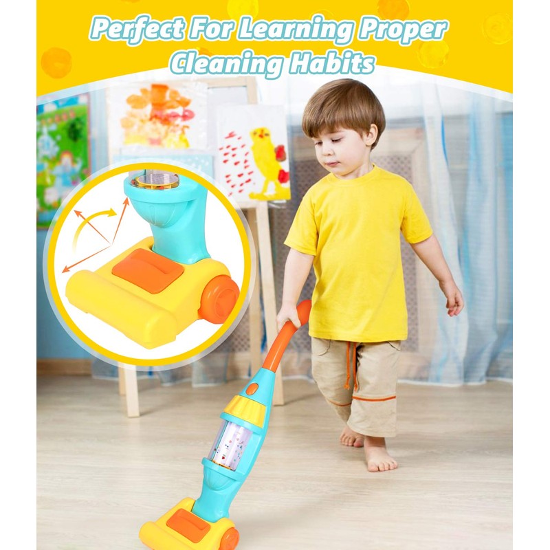 - 👦【Realistic Vacuum Sounds, Action & Fun Lights】Toy Vacuum Cleaner comes alive with realistic sounds, whirling stars & fun activities! Just like a real vacuum cleaner, bright colors and whirlwind movement for visual stimulation. perfect for children's motor skill development and just plain fun!