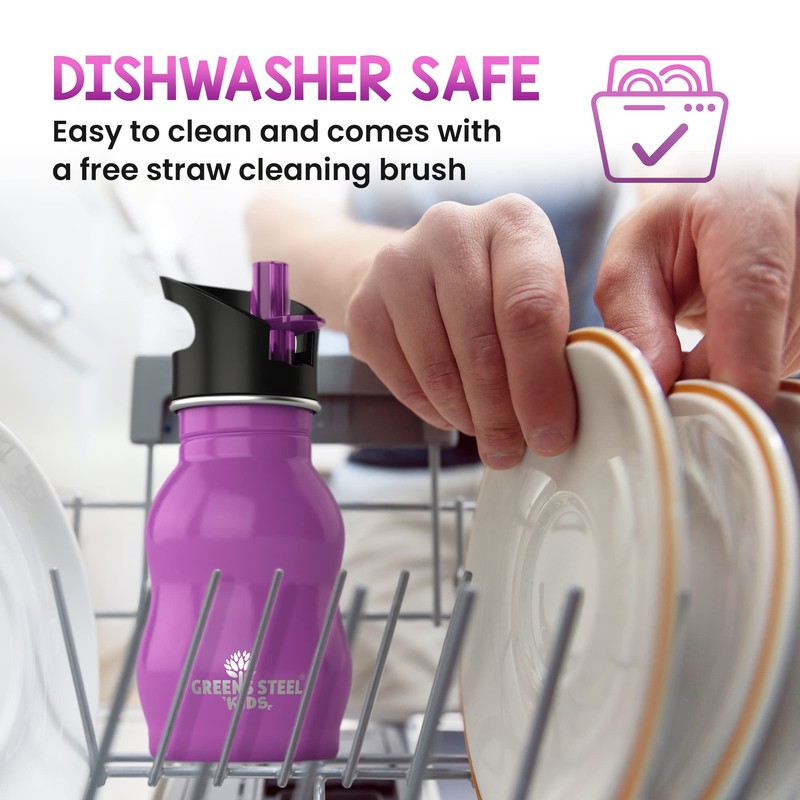 - ✨ EASY TO CLEAN & USE: Dishwasher Safe and comes with a free straw cleaning brush. The leak-proof lid has a smart design with a built-in handle to easily carry the bottle everywhere (or clip on) & the cap releases the right flow of water for kids, suitable for all ages. Perfect for home, school lunch box, sports, travelling, for boys & girls!