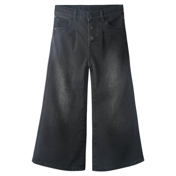 KIDSCOOL SPACE Big Girls' Wide-Leg Jeans,3 Buttons Front Elastic Band InsideSimple Design Flared Denim Pants,Black,16