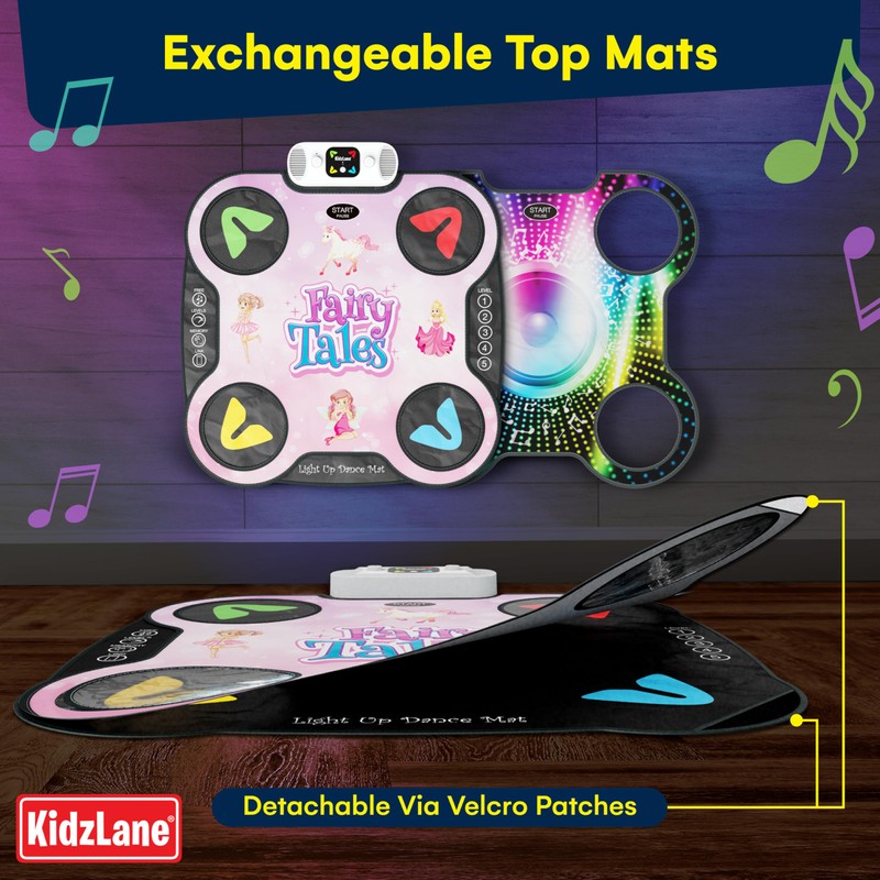 Kidzlane Light Up DJ Dance Mat for Kids - Bluetooth & AUX Compatible - 3 Fun Arcade Games with 5 Difficulty Levels - Detachable Top Mats with Fairytale & Speaker Motives - Adjustable Volume - Ages 6+