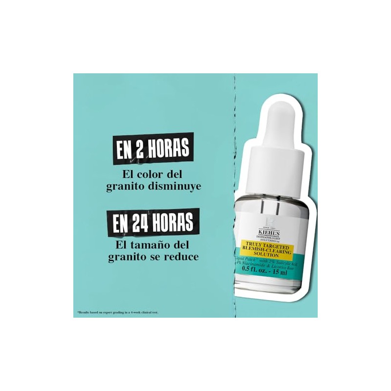 🌟 ⭐ Kiehl's Truly Targeted Blemish-Clearing Solution, Solución Eliminadora de Acné, Tratamiento Líquido Invisible para Acné y Espinillas, Desvanece Manchas e Imperfecciones, Con 2% de Ácido Salicílico y 4% de Niacinamida, 15 ml ⭐ 🌟
