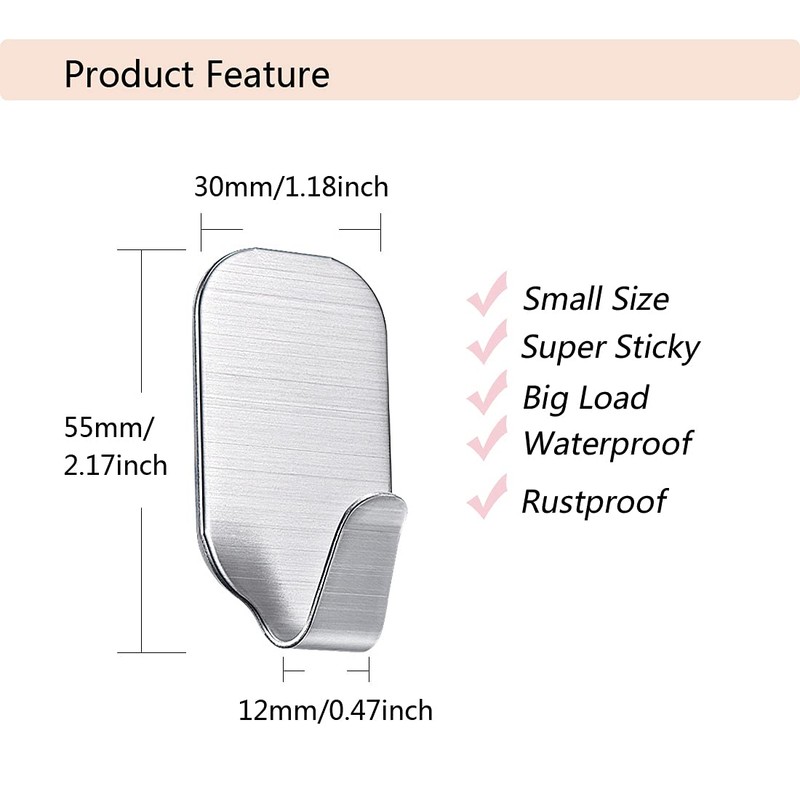 - ☞ These wall mount hooks adhesive metal hooks are mainly made of SUS304 stainless steel material, thus they are very sturdy and super practical. You can use them as bathroom adhesive hooks utility hooks, waterproof adhesive hooks kitchen wall hooks, stick on door hooks adhesive and so on. They are indeed strong stick on hooks for hanging for small item organization at home and help to make our storage life much easier.