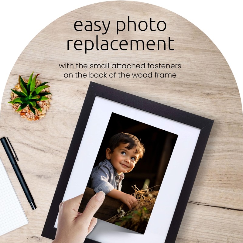 - HASSLE-FREE REPLACEMENT: The small attached fasteners on the back of this wood frame offer easy photo replacement and allow you to swap prints quickly and easily. The chic, contemporary frames are available in 2 colors—white and black.