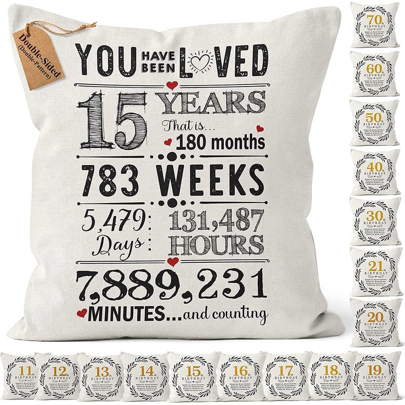 Kies CROWNLY CRYSTAL®(Double-Sided) 15th Birthday Gifts for Girls and Boys Cushion Covers 18x18 Inches 15th Birthday Decorations Gifts for Party 15 Year Olds Girl And Boy 15th birthday Gift İdea
