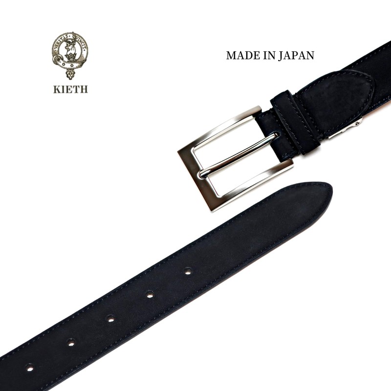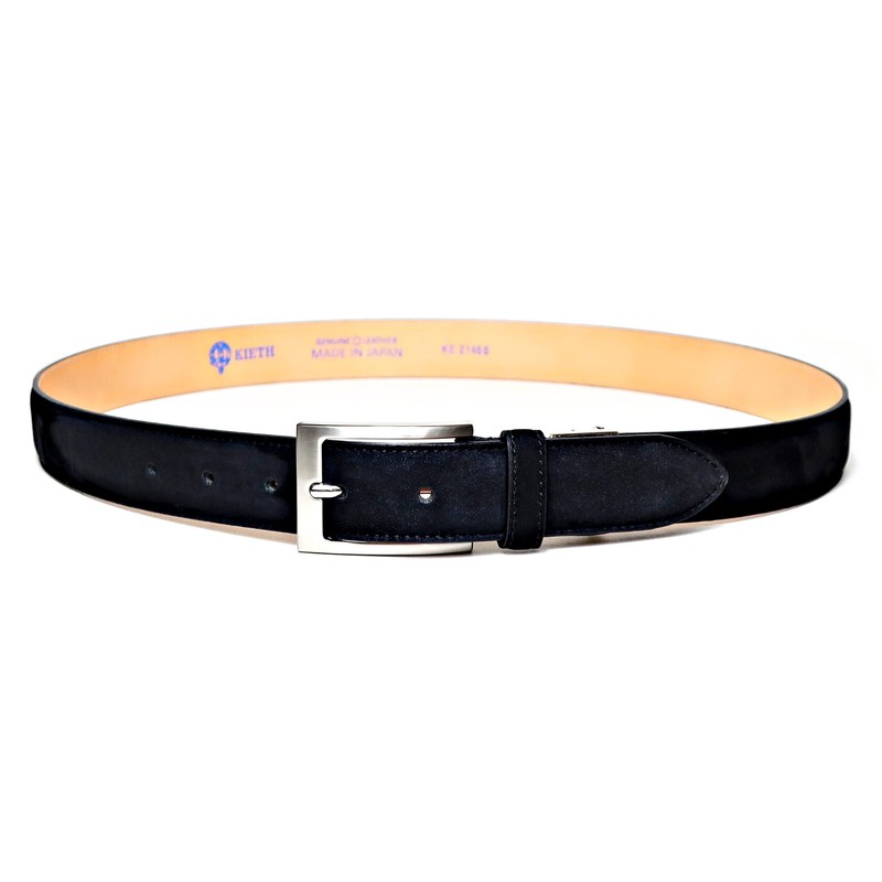 KIETH KE21466-19 Men's Nubuck Belt, Business, Genuine Leather, Black, Adjustable Size, Made in Japan, Black