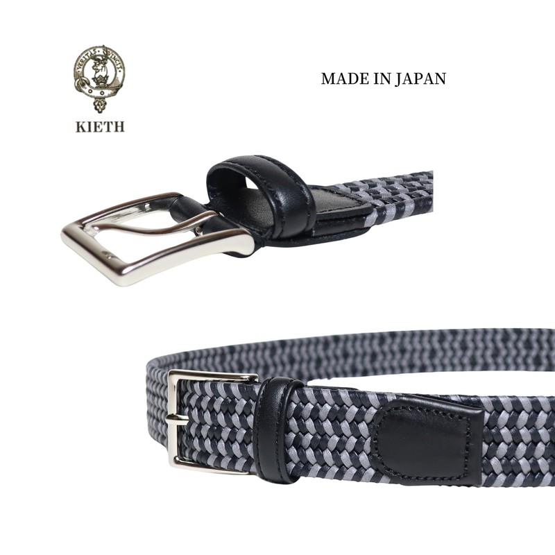 KIETH KE21469-19 Men's Mesh Belt, Stretch Cowhide Leather, Cotton, Italian Material, Black, Gray, Made in Japan, gray