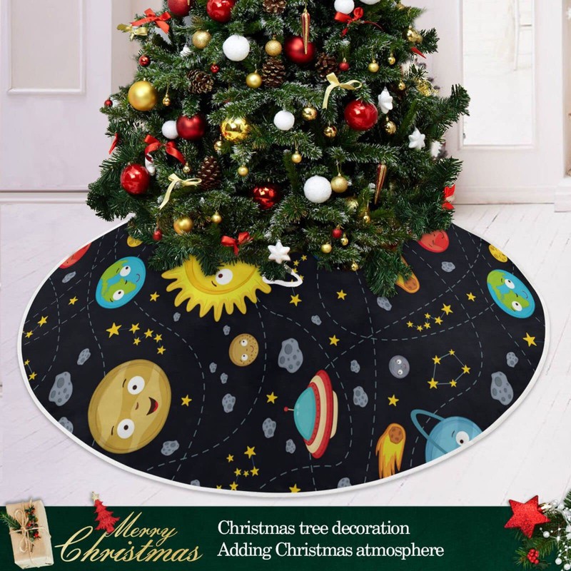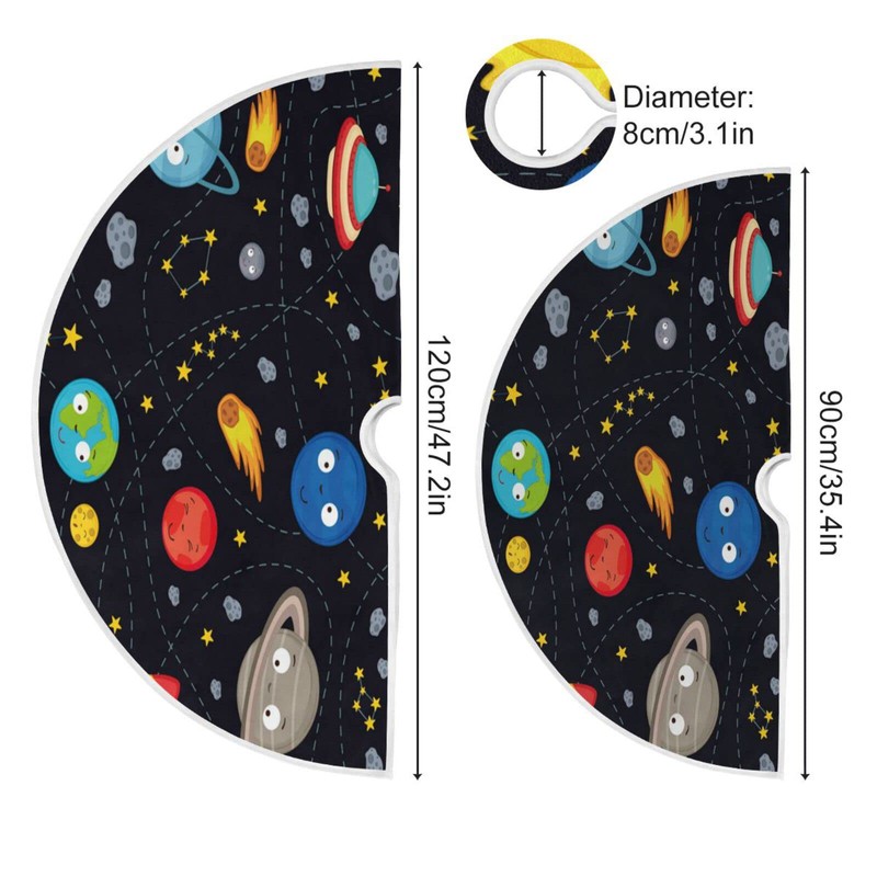 Kigai Cute Outer Space Galaxy Planet Tree Skirt Home Christmas Decoration Large Round Tree Skirt 35.4 Inches
