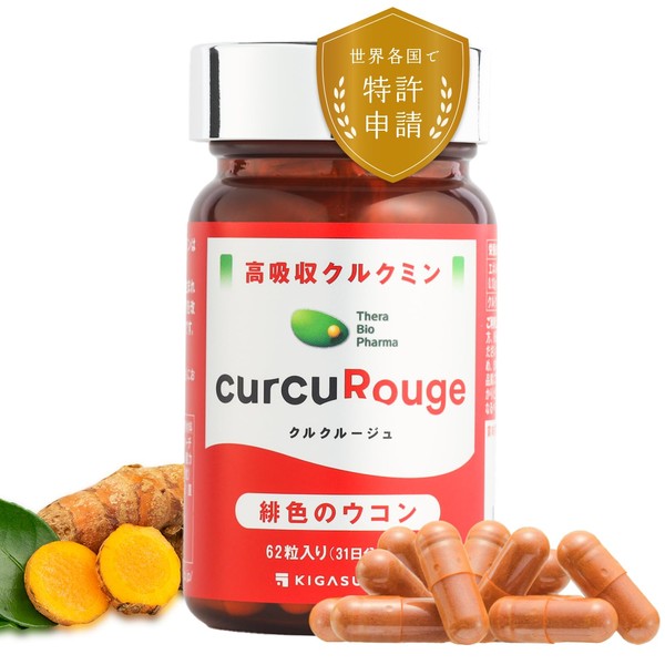 【カズレーザーと学ぶで紹介成分】KIGASURE 高吸収型 クルクミン サプリメント クルクルージュ 62粒 1ヶ月分 京都大学発ベンチャー 開発 202倍の吸収力 国際特許出願 緋色 ウコン