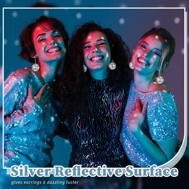 - Reflective Mirror Design: the reflective silver surface of the disco ball earrings brings a shine to the earrings, and these disco earrings for women will match the color of your outfit and make you stand out on the dance floor