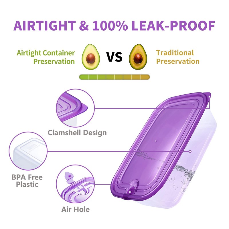 • Airtight & Leak-proof:Interlocking lid design with air hole ,could block air and avoid moisture evaporating,ensuring the freshness of food,airtight and leak-proof