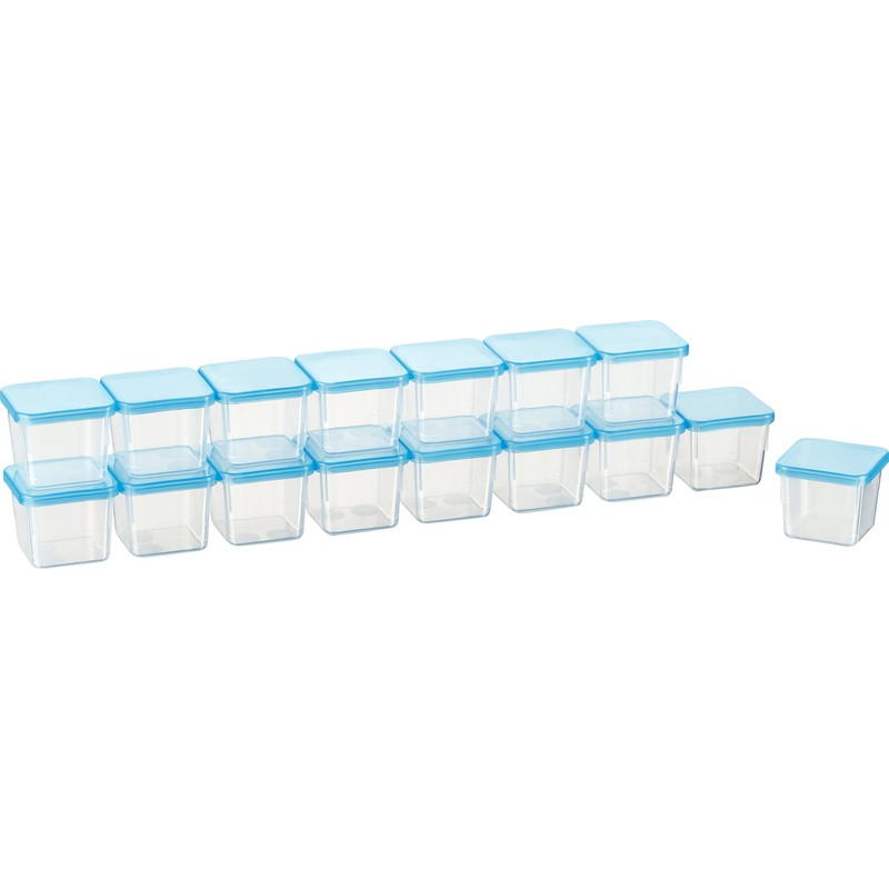- You will receive sets of mini freezer containers, each with its own blue lid. Please choose from our different sets.