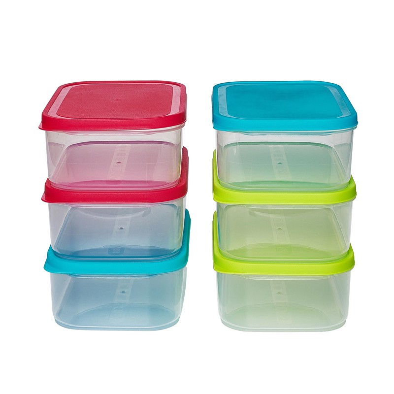 Kigima Rectangular Food Storage Containers 0.5 Litre (510 ml) Set of 12 with Flex Lid Colourful