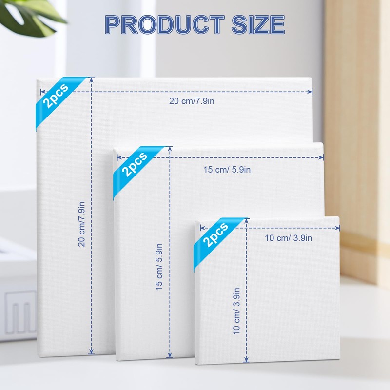 - 【Various sizes】: this canvas set contains 3 canvas boards of different sizes to meet your requirements for the presentation of works of different sizes and allow you to easily combine and display different paintings. Canvas for painting 2 of each size, specific sizes: 20 x 20 cm / 7.9 x 7.9 inches, 15 x 15 cm / 5.9 x 5.9 inches, 10 x 10 inches. 3.9 x 3.9 inches.
